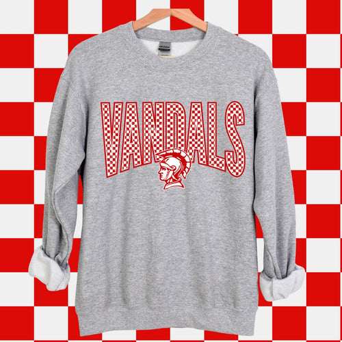 *DTF* Vandals Checkered Print With Mascot Head Oxford Grey Sweatshirt