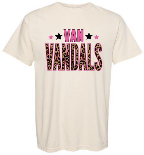*DTF* Van Vandals Leopard Words With Stars Ivory Comfort Color Tee