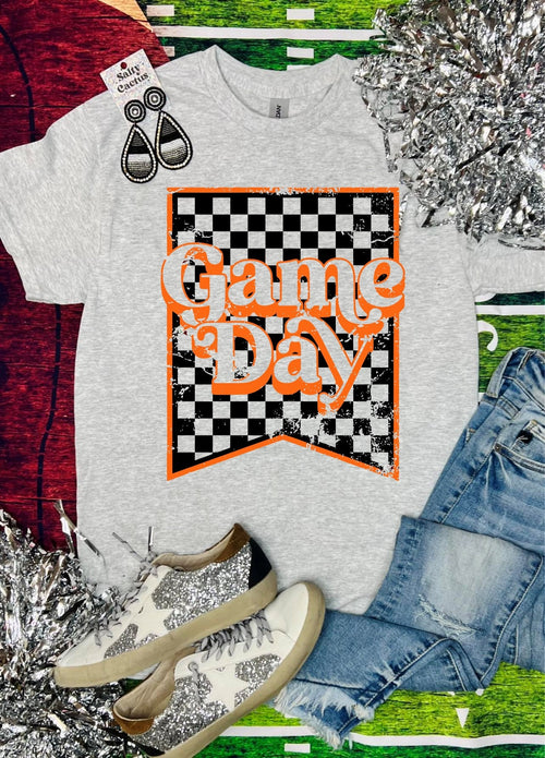 KIDS Game Day Checkered Flag Ash Grey Tee