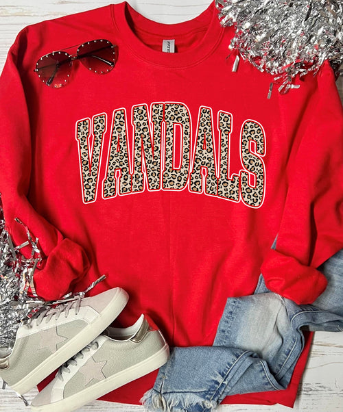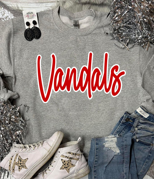 *DTF* Vandals Red With White Outline Oxford Grey Sweatshirt