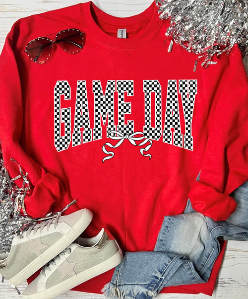Game Day Checkered Stars Red Gildan Sweatshirt