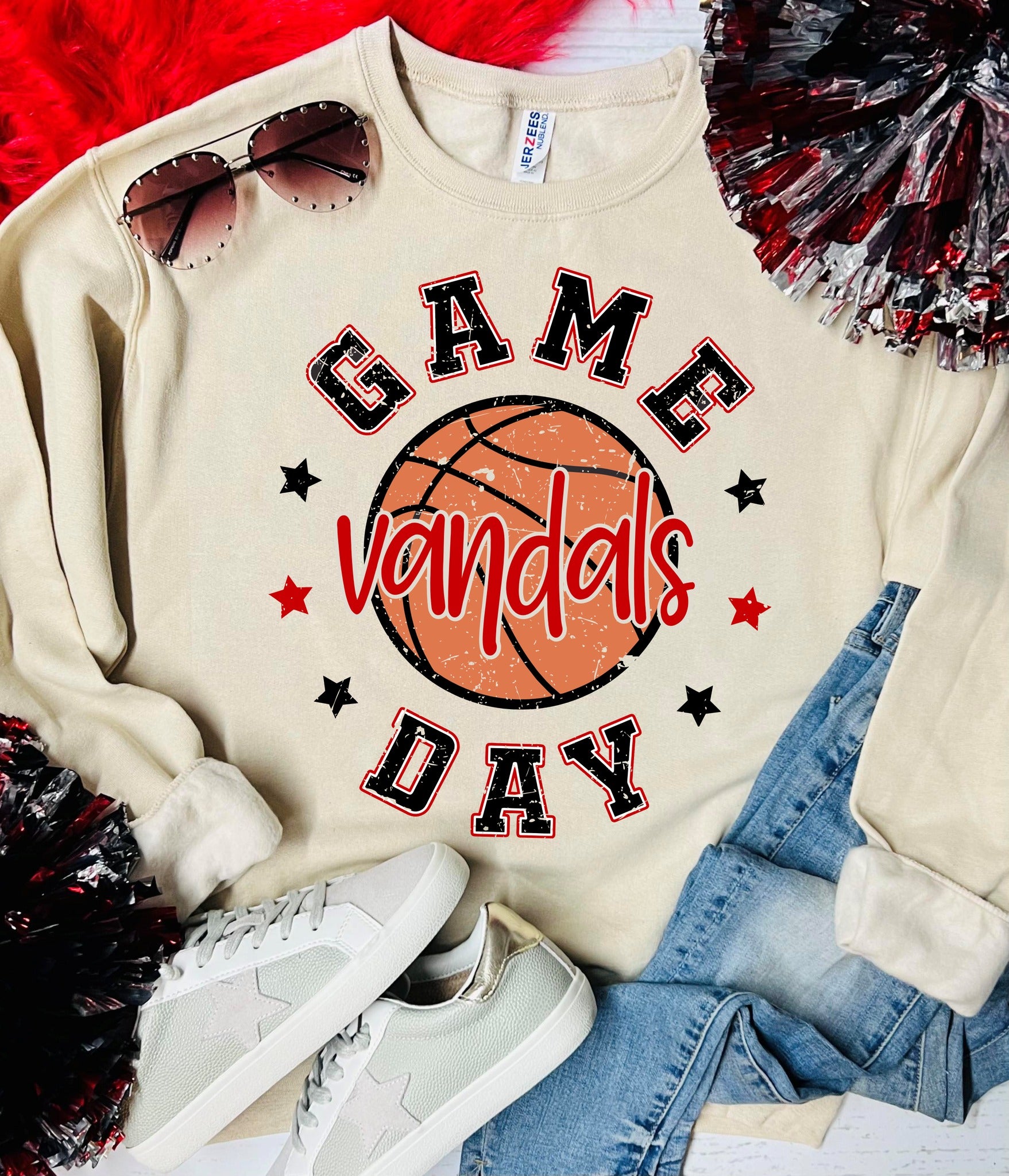 Adults are on tan sweatshirt, kids are on oxford grey sweatshirt.
