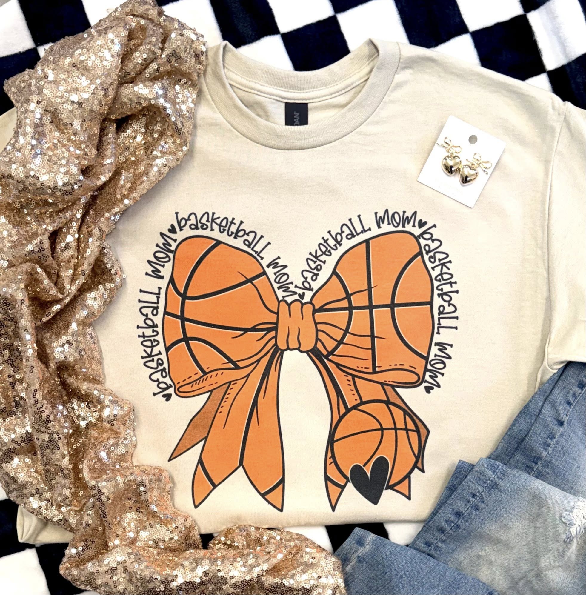 Basketball MOM Bow Tan Tee